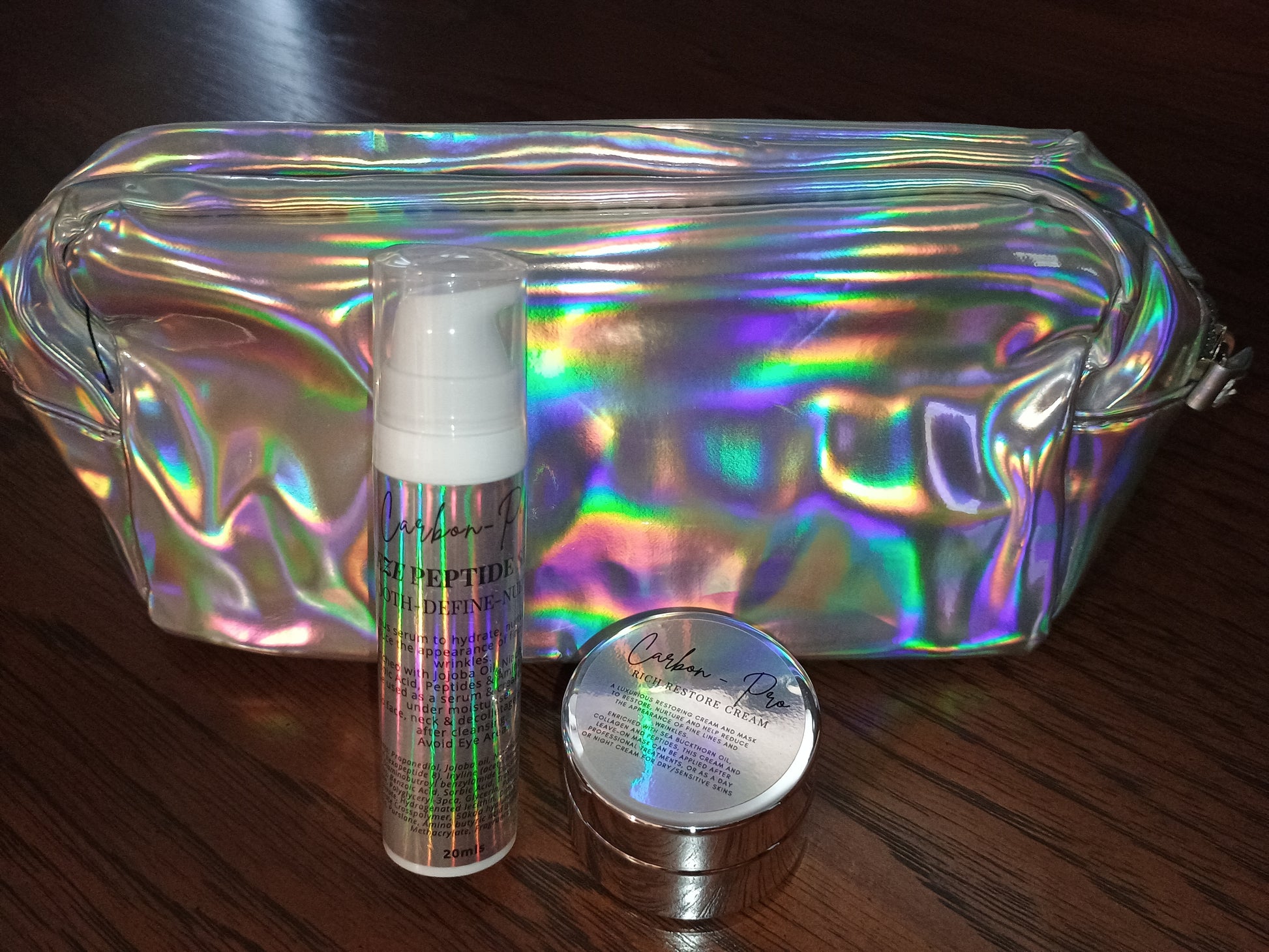 Contains 20ml freeze peptide serum+ 20ml Rich Restore Cream plus a bonus cosmetic bag - perfect for travel. - these are our Power 2 products - botox-mimicking peptides to smooth the appearance of fine lines and wrinkles and lavish your skin with love with the Rich Restore Cream.